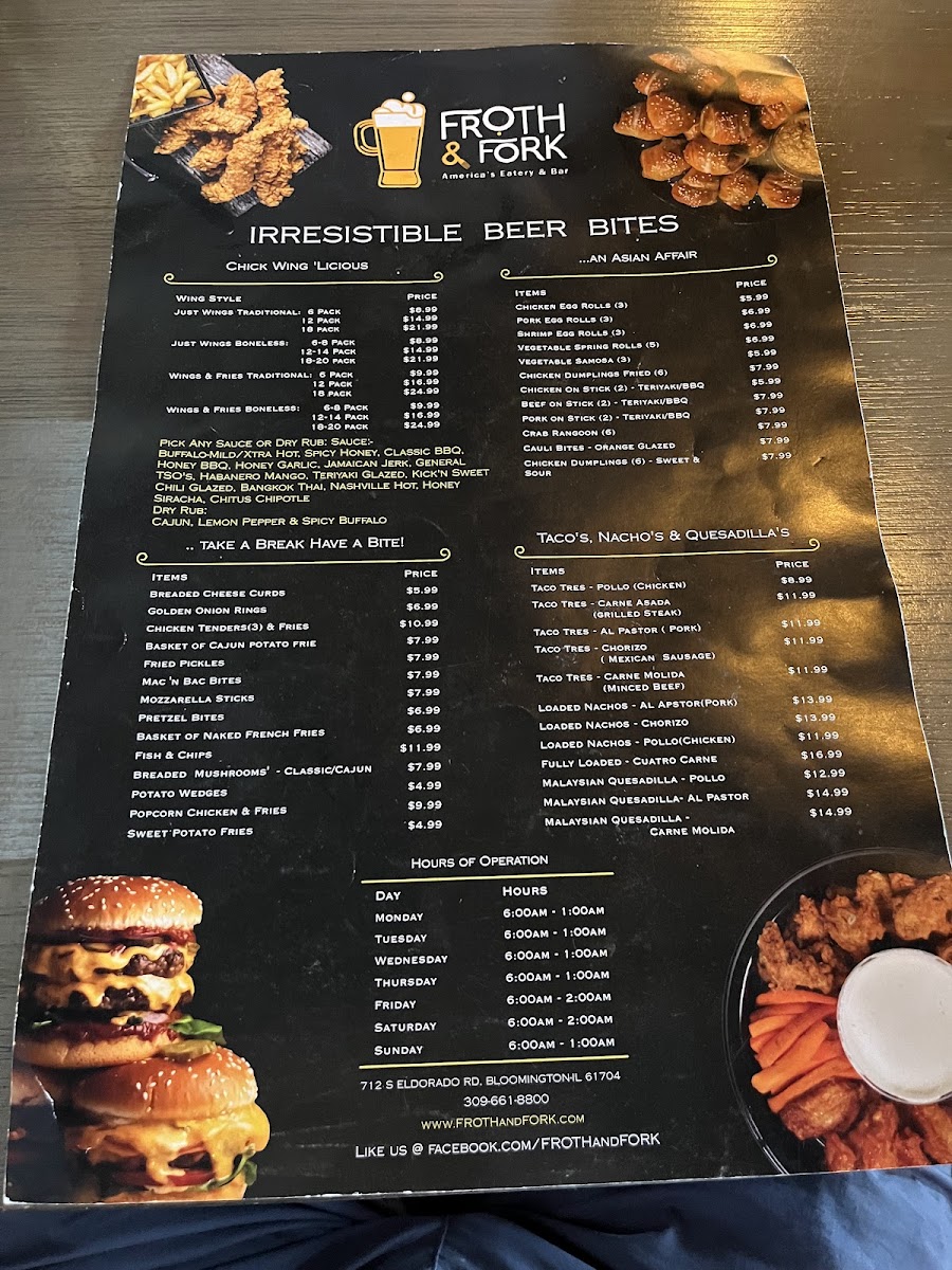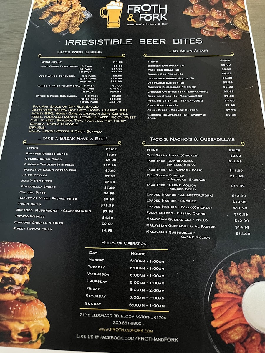 Introducing Froth & Fork, your new go-to dining destination in Bloomington, IL. Located at 712 Eldorado Rd, this culinary haven offers a menu brimming with diverse and delectable options that cater to every palate. Start your day right with their breakfast indulgences, featuring mouthwatering Benedict varieties and hearty breakfast bowls that have garnered rave reviews. Notably, diners have praised the Bacon Benedict and the unforgettable breakfast burrito, with one guest declaring it the best they've ever tasted.